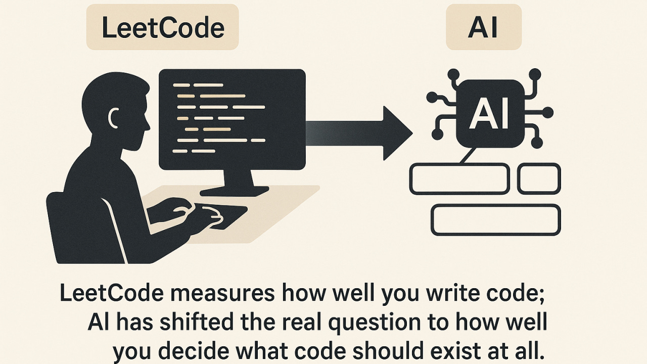 LeetCode measures how well you write code; AI has shifted the real question to how well you decide what code should exist at all.